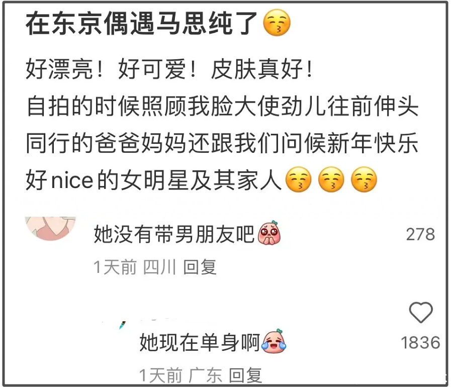 还有网友爆料马思纯25年初的时候,和家人一起去日本旅游,疑似是为了分手散心。