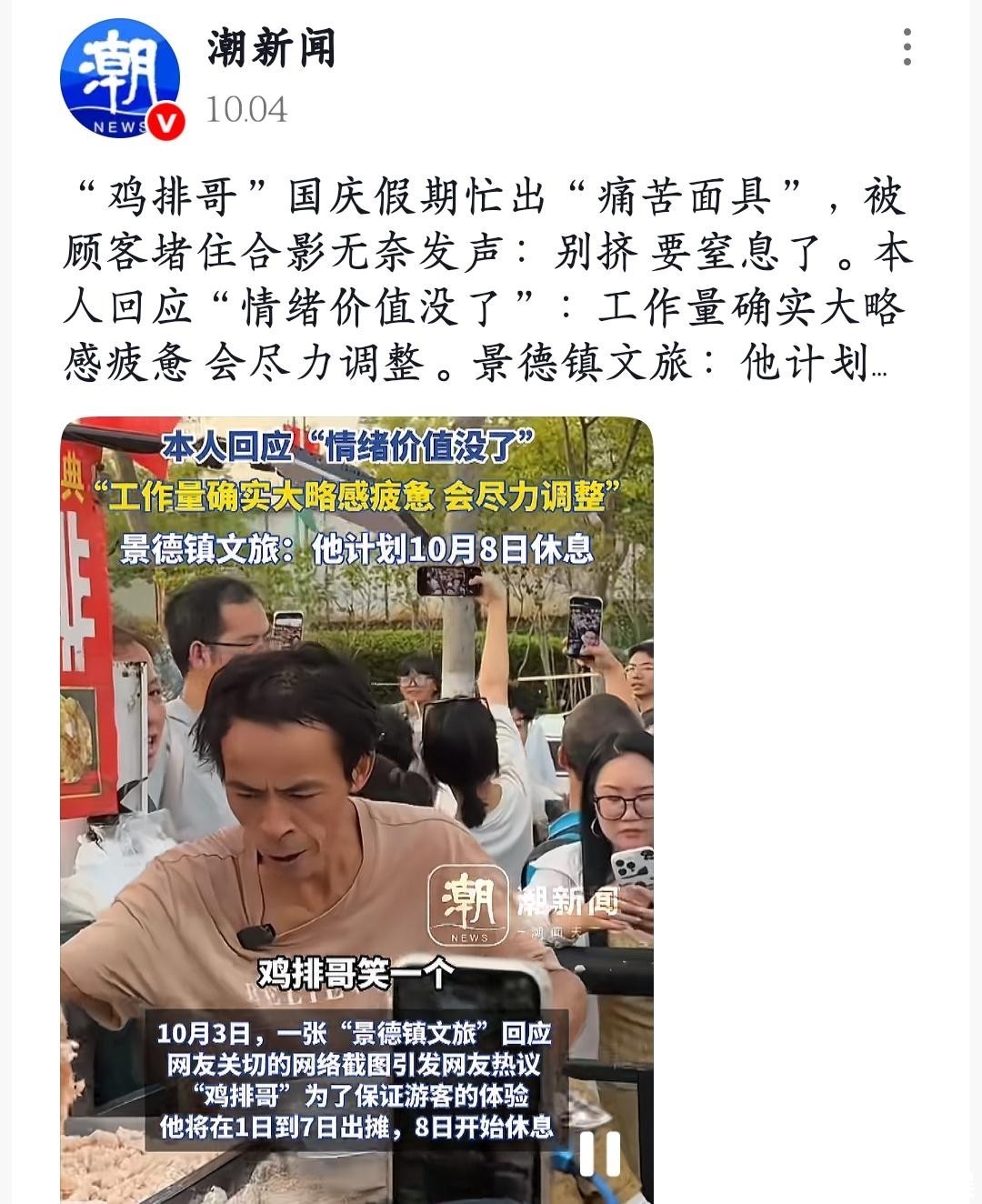 正是这些网友亲手将鸡排叔送上神坛,却又因其疲惫状态差点将其压垮。