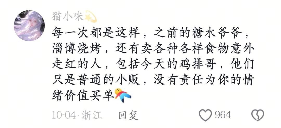 这种所谓的“塌房”实在荒谬,大家忘了,他本职是卖鸡排,不是表演情绪价值。