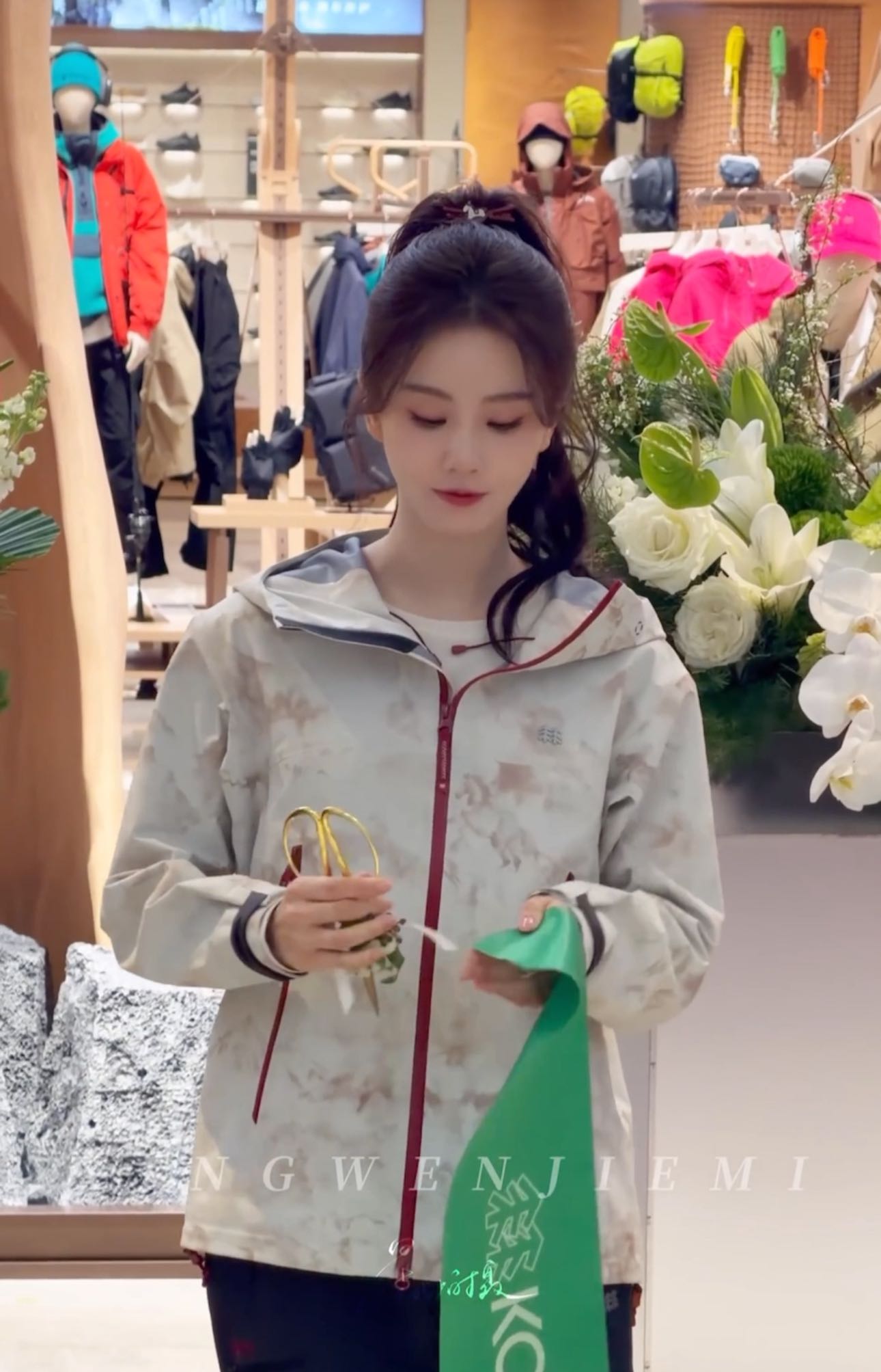 如果说造型是视觉惊喜,那刘诗诗在剪彩环节的暖心细节,更让“温柔”二字有了具象注解。活动现场镜头捕捉到,她手持剪刀时特意握住尖锐刀头,始终让安全的一侧朝向他人,这份下意识的顾及让人倍感贴心;剪彩结束后,她默默将手中的彩头折叠整齐,转身交给工作人员,动作轻柔又认真。